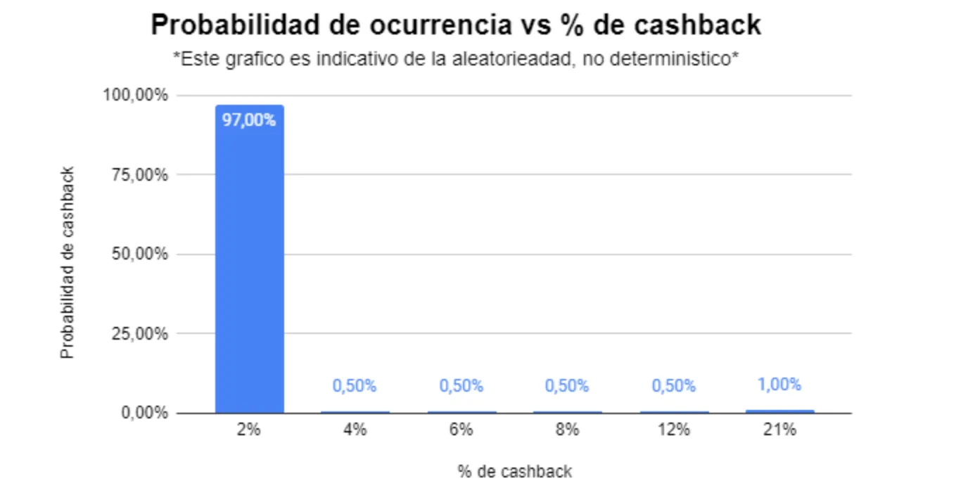 De nuevo, los términos y condiciones nos dicen que las probabilidades de ocurrencia de los porcentajes de cashback son: